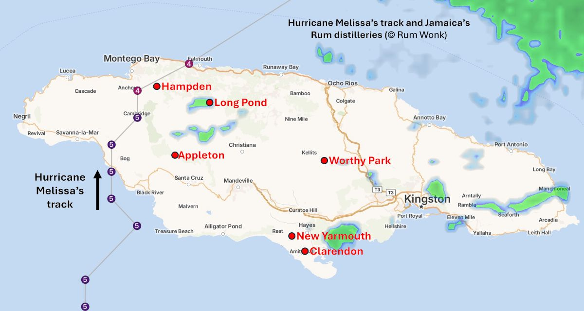 Jamaica’s distilleries typically hold a reserve of molasses, typically enough for a few months. However, if the molasses terminals where tanker ships unload imported molasses were heavily damaged, the distilleries could exhaust their molasses supply. It’s unknown how much of a reserve each distillery had on hand when Melissa struck.