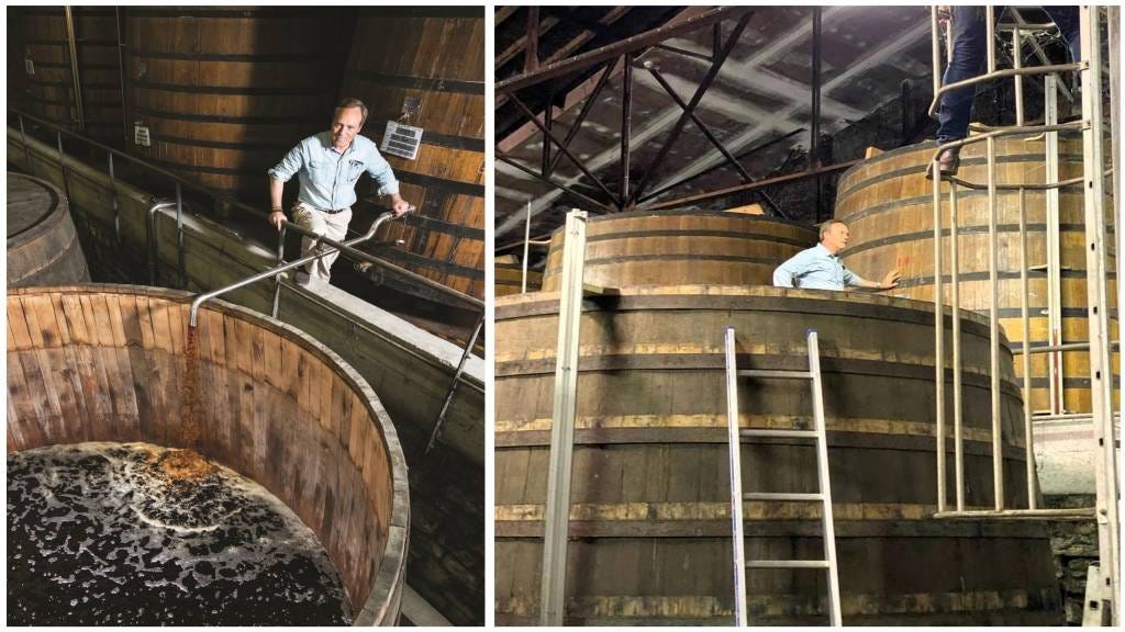 The two open vats used to make Mister Fogg hold enough rum to make around 35,000 bottles. Because the rum continuously flows between the two vats for many months, only one batch can be made at a time.